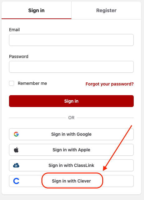 - Navigate to app.plt4m.com and select the Sign in with Clever option