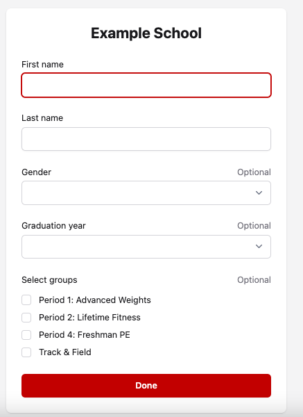 Next, they will enter their name, grad year, and gender and then choose any applicable groups that they belong to.